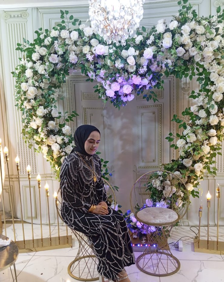 Uzun siyah elbise, drapeli ve etnik hint desenlidir. Normal kesim, askılı kollu ve halter yaka tasarıma sahiptir, düğünler için uygundur. Sadece 1 kez giyildi.