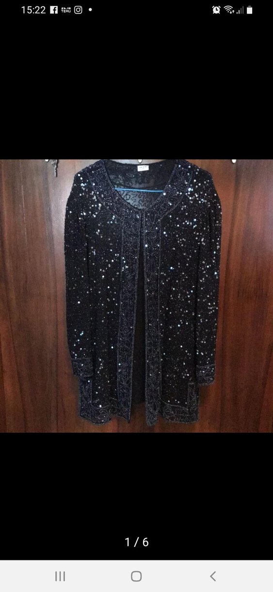 Uzun siyah kadın ceketi, boncuk işlemeli ve uzun kolludur. İpek gibi kumaştan üretilmiş olup, gevşek kesim ve yaka detayına sahiptir. Gotik ve gösterişli tarzda, romantik akşamlar için uygundur. AYRICA MAGAZA DA 5.000 ŞARKAN DA GİDİP SORABİLİRSINIZ.