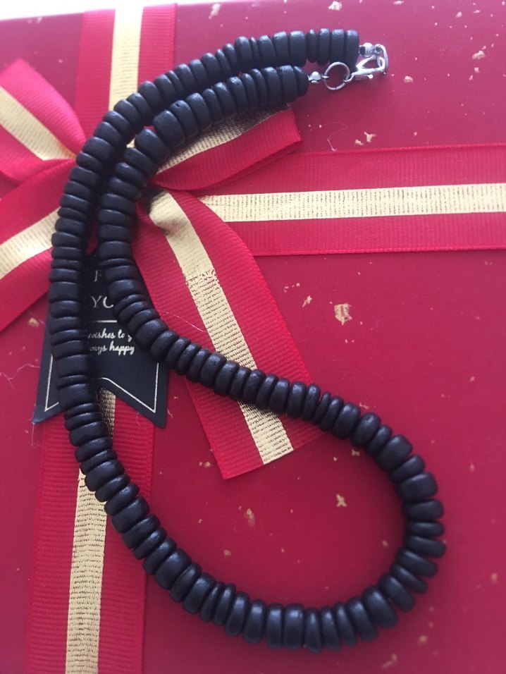 Uzun siyah boncuklardan oluşan, bohem tarzda günlük kullanıma uygun kolye. Hindistan cevizi kabuğu boncuk kolye 45 cm ölcüsü
