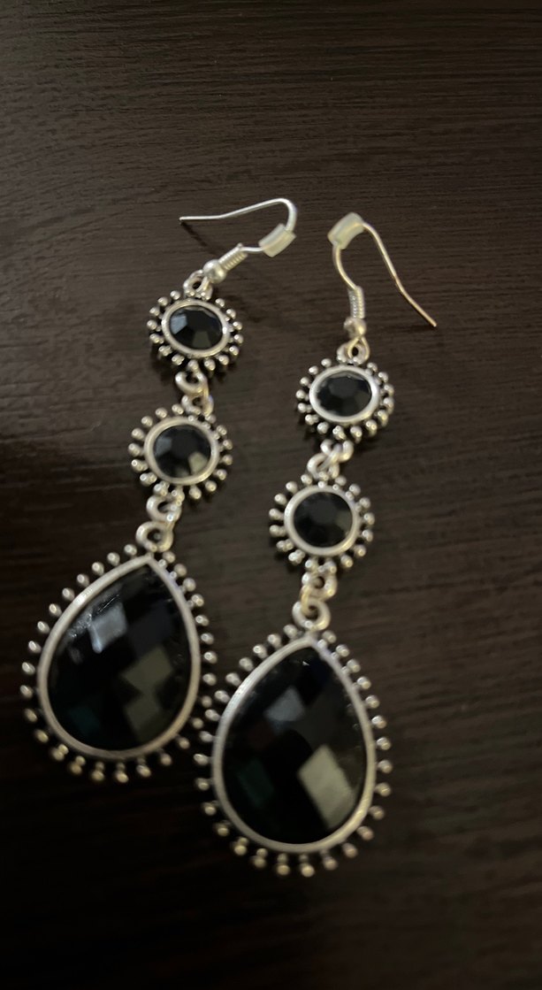 Uzun siyah küpeler, boncuklu desenlerle gotik ve bohem tarzı birleştirir, romantik buluşma için uygundur.