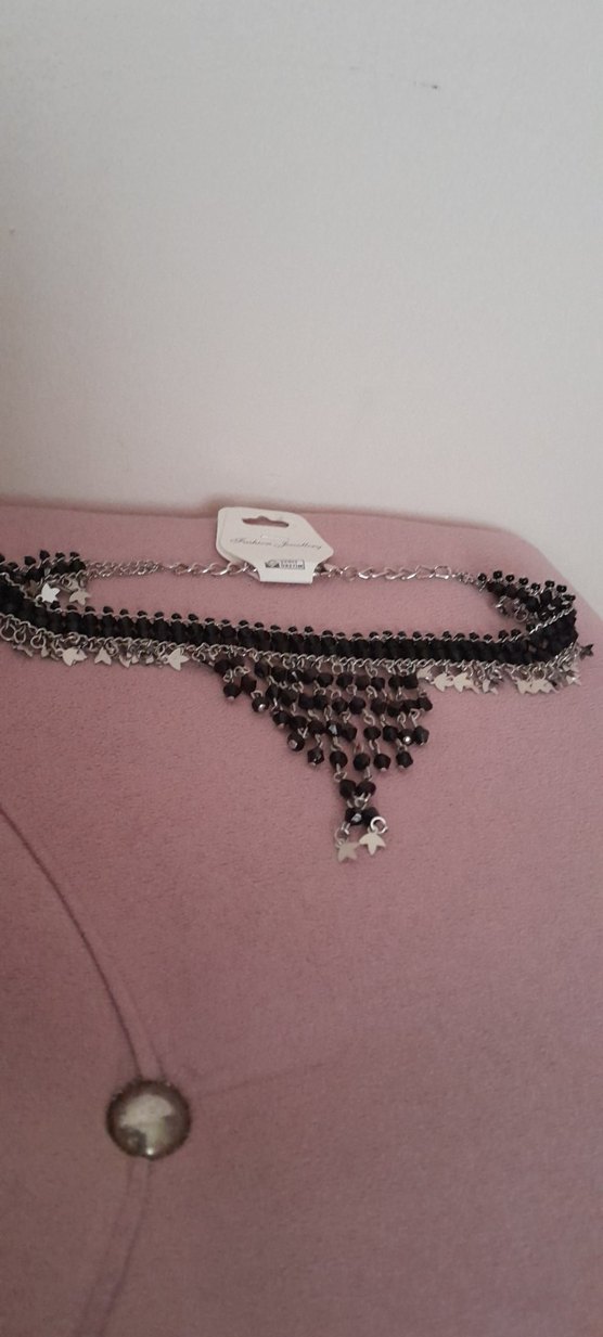 Uzun Siyah Boncuklu Gotik Tasma Kolye