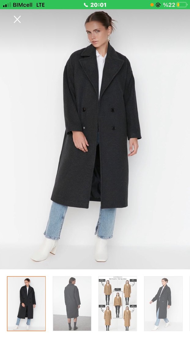 Uzun siyah kaban, çift düğmeli ön kısmı ve yumuşak, sıcak kumaşıyla soğuk havalar için uygundur. Klasik yaka ve rahat kesime sahiptir.