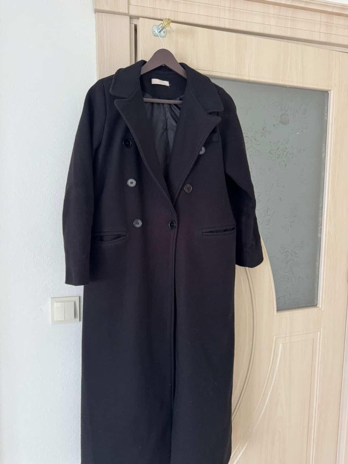 Uzun siyah kaban, çift düğmeli ve klasik yaka detaylarına sahiptir. Yumuşak ve sıcak tutan kumaştan üretilmiştir. ufak tefek deformeleri mevcuttur. Kaban kullanıldığı için tüylenme mevcuttur.