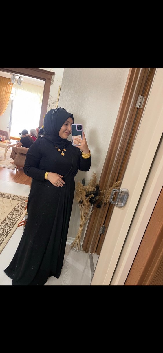 Yüksek yakalı ve uzun kollu, dökümlü tasarıma sahip uzun siyah elbise. İpek gibi kumaştan, etnik desenli, g sade ve rahat kesim.