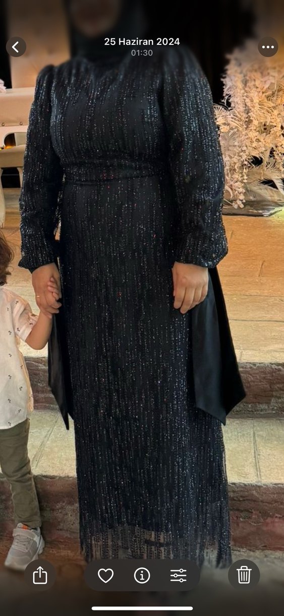 Uzun Siyah Drapeli Kadın Abiye Elbise
