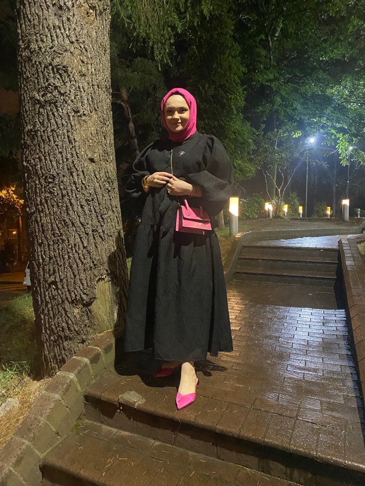 Uzun Siyah Drapeli Kadın elbise