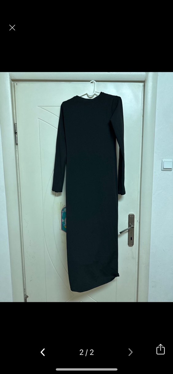 Uzun Siyah Drapeli Kadın Elbise