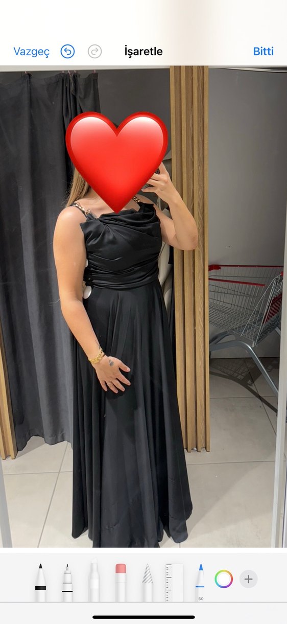 Uzun siyah abiye elbise, drapeli straplez yakaya ve ince askılara sahiptir. Gösterişli, vücuda oturan kesimiyle gotik tarzda, romantik akşamlar için uygun. Sadece birkez giydim yeni etiketi hala duruyor 175 boyum kilo 78