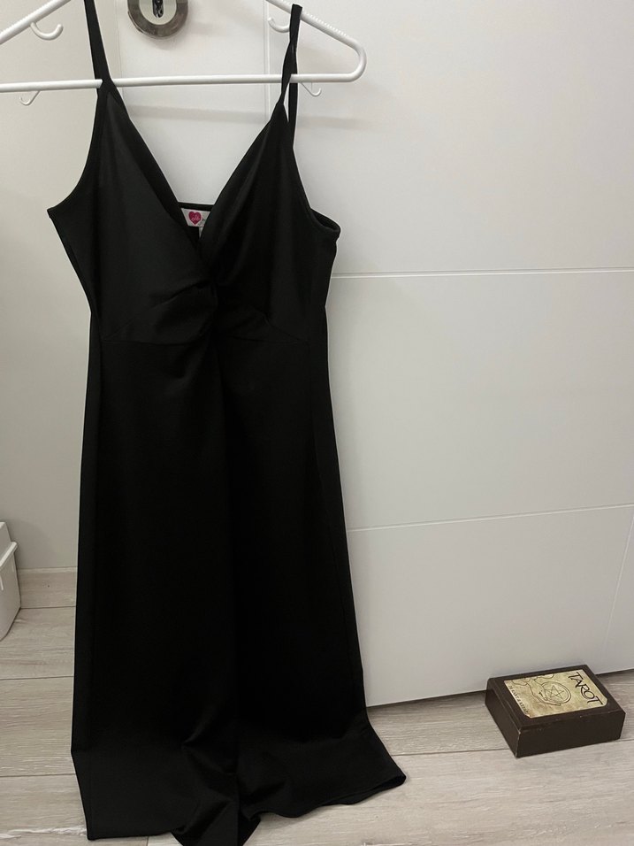 Uzun Siyah Drapeli V Yakalı Kadın Elbise