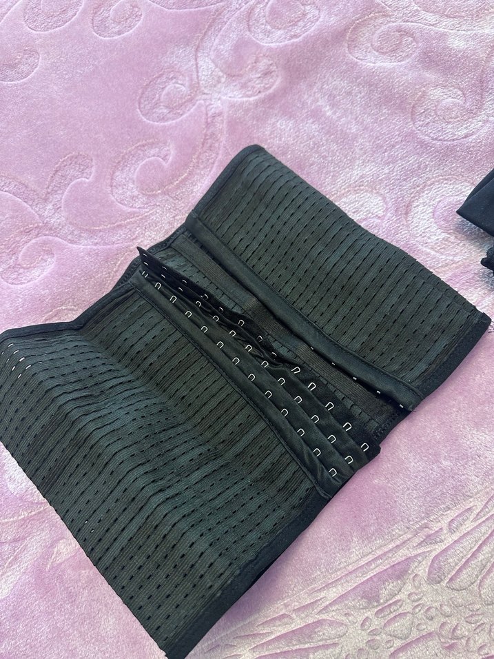 Siyah, uzun boylu ve vücuda oturan bu emzirme korsesi, ayarlanabilir destek için çoklu çıtçıt kapama sistemine sahiptir. Desensiz ve sade görünümlüdür.