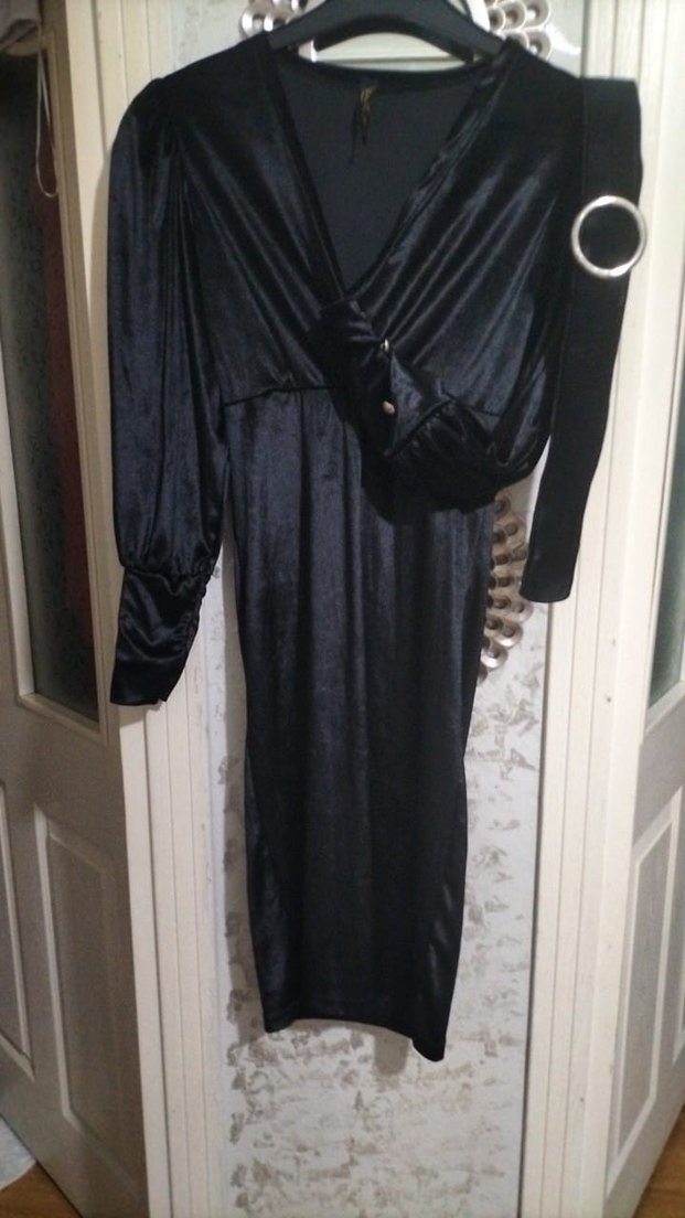 Uzun siyah, v yaka, drapeli, uzun kollu, gotik tarzda dar kesim 1 kere giyildi