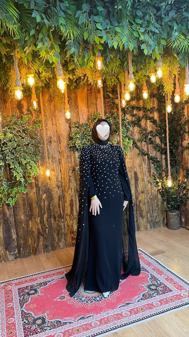 Uzun Siyah Gotik İşlemeli Abiye Elbise