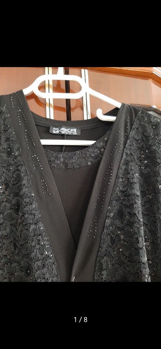 Uzun kollu, notched lapel yakalı, dökümlü tasarımlı, sentetik kumaştan yapılmış siyah, bol kesim gotik tarz uzun elbise.