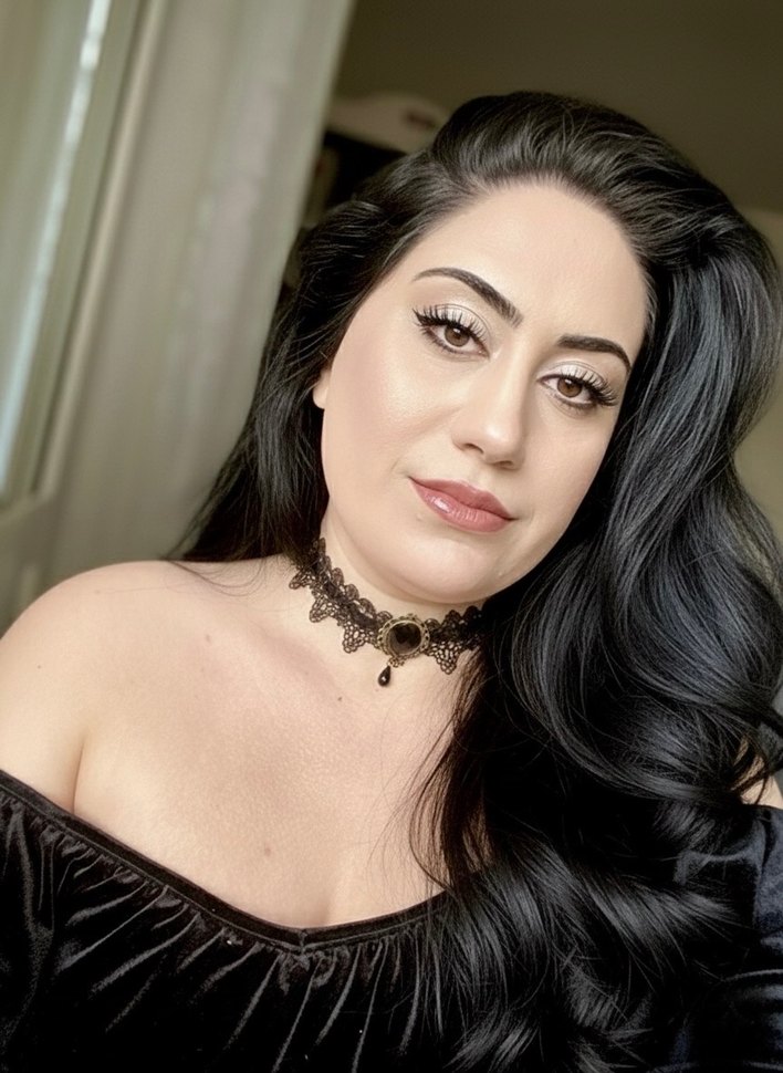 Uzun siyah gotik kadın kolye, etnik desenli ve parlak görünümlü, romantik akşamlar için zahmetsiz şıklık sunar.