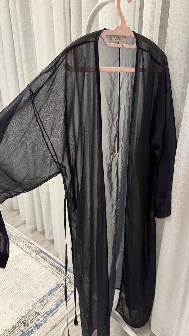 Uzun siyah , bol kesim ve askılı kollarla gotik stile uygun, ince ve hafif kumaştan yapılmıştır.