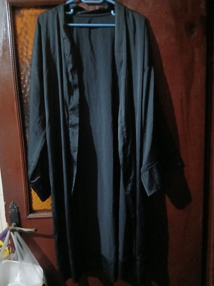Uzun boy, bol kesim ve uzun kollu siyah kadın sabahlık, gotik tarzda ve desensizdir. sol kolunda sigara yanığı vardır görselde de mevcuttur. onun haricinde bir yıpranması yoktur yumuşacık dokusu vardır. belinin bağcığıda kayıptır.