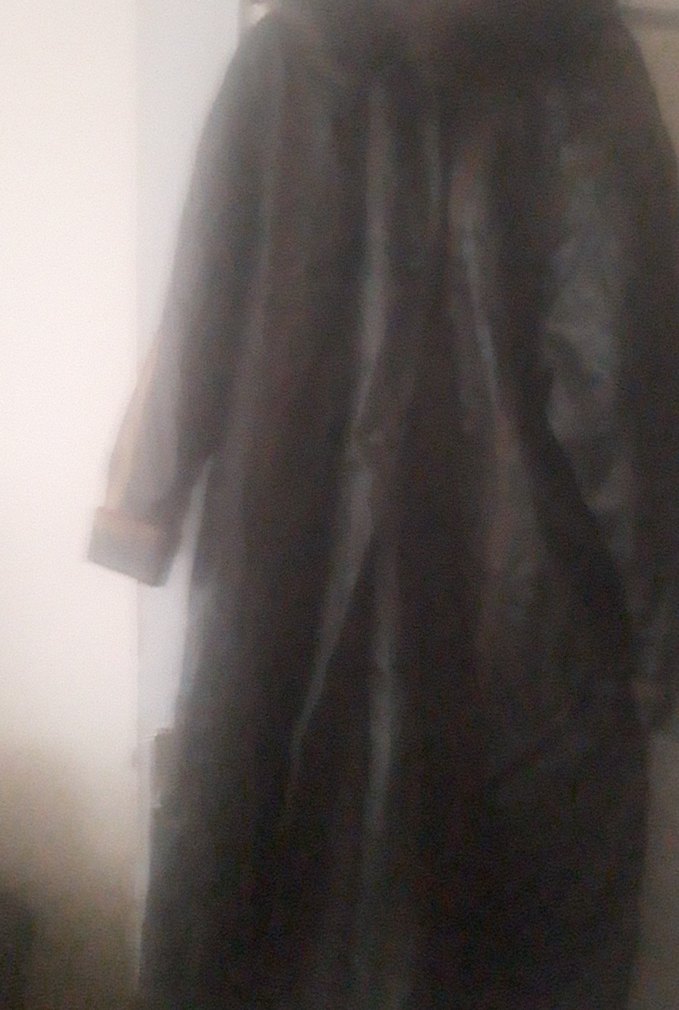 Uzun siyah yağmurluk, drapeli tasarımı ve kesikli yaka detayıyla dikkat çeker. Sentetik kumaştan, bol kesimli ve uzun kolludur, gotik tarzı yansıtır. ☔️