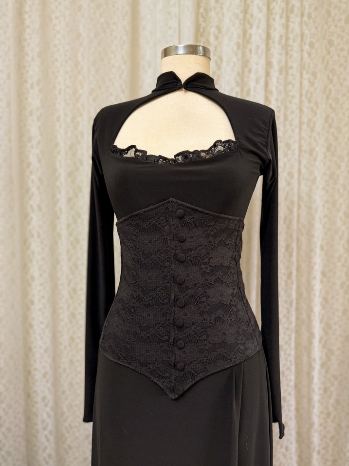 Uzun Siyah Gotik korseli elbise