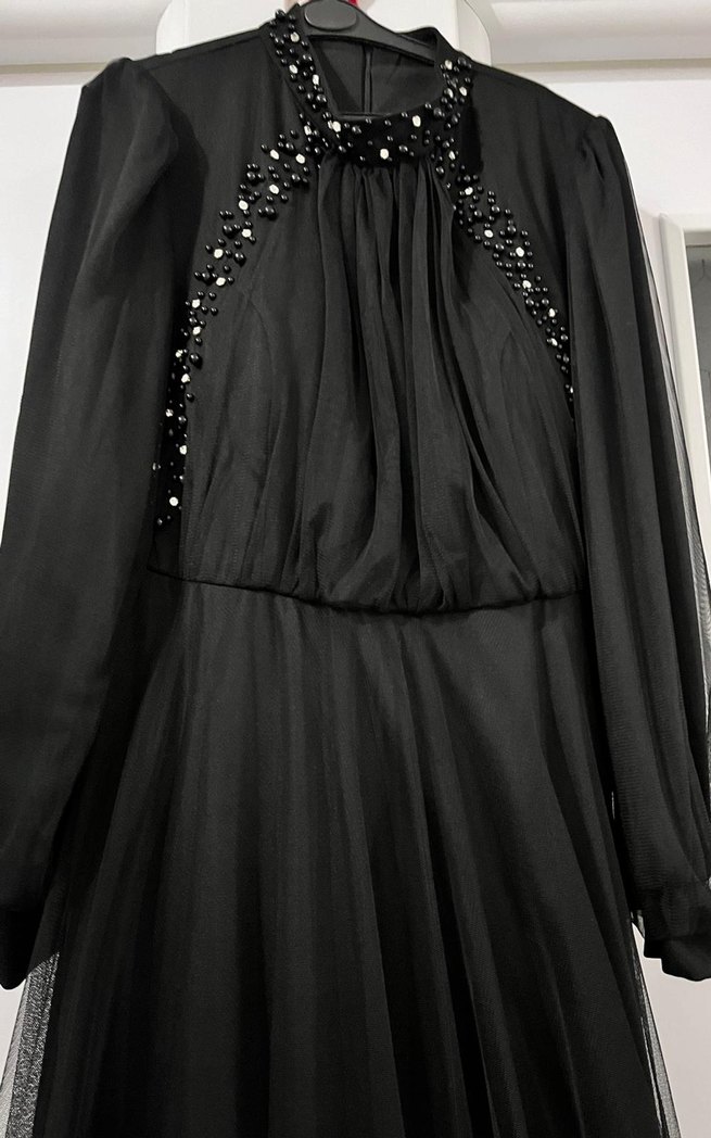 Uzun Siyah Gotik Nakışlı Abiye Elbise
