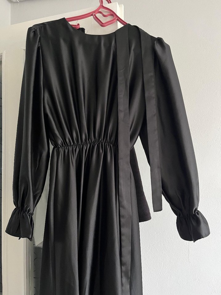 Uzun Siyah Gotik Saten Elbise