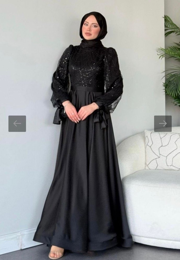 Uzun Siyah İşlemeli Tesettür Abiye Elbise