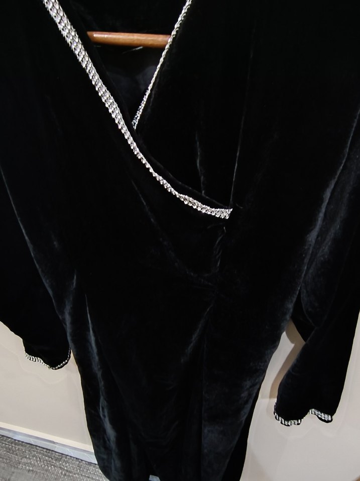 Uzun Siyah kadife kadın elbise.