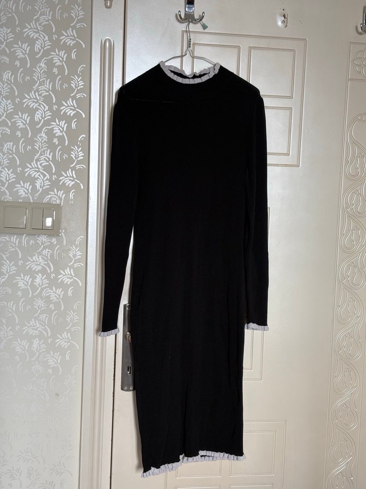 Triko çok rahat ve güzel bir elbise kol yaka ve etek detayı fırfırlı vücudu saran çok hoş nir elbise boyum 170 dizimin 3-4 parmak altında kalıyor