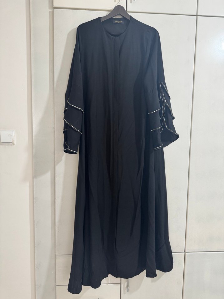 Bu uzun siyah ferace, dökümlü uzun kollu ve yüksek yakalı salaş bir kesime sahiptir. Düz ve pürüzsüz sentetik kumaştan yapılmıştır, günlük kullanıma uygundur.