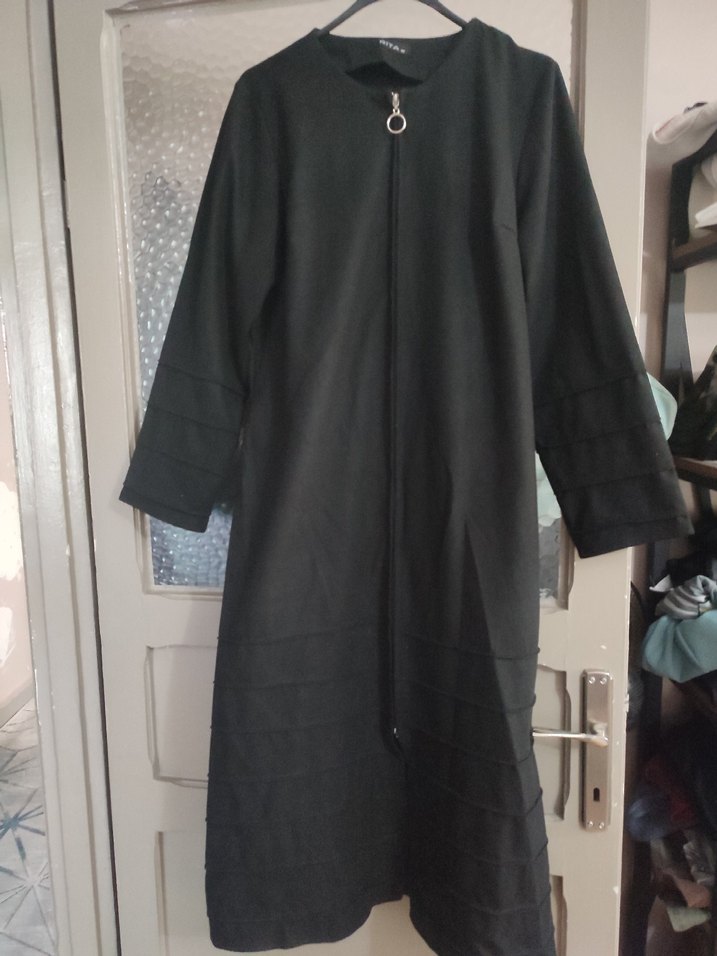 Uzun siyah, yüksek yakalı ve bol kesimlidir. Drapeli detaylara sahip, uzun kollu, minimal gotik tarzda, sade ve günlük kullanıma uygundur.