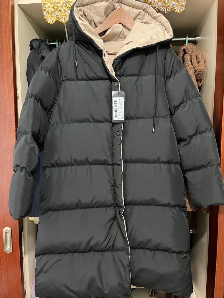 Uzun Siyah Kadın Kışlık Mont Kapüşonlu