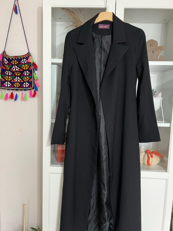 Uzun Siyah Kadın Ofis ceket
