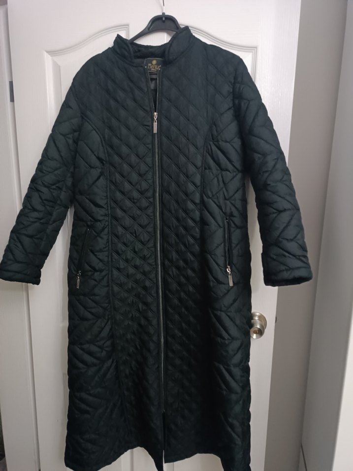Uzun siyah kapitone kadın mont, fermuarlı cepler ve ön kapama ile. Uzun kollu, yakalı ve vücuda oturan kesimiyle yumuşak, sıcak kumaştan üretilmiştir. almak için busraa1823 yazın