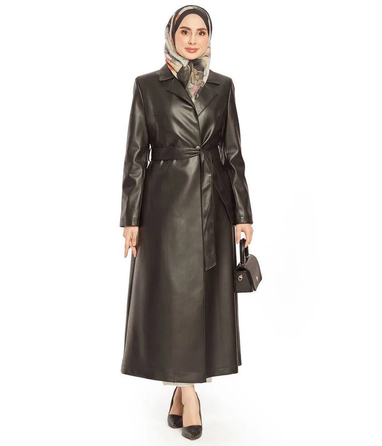 Uzun siyah kaban, kemerli ve kesimli yaka detaylıdır. Rahat kesim ve uzun kolludur, yumuşak ve sıcak kumaştan üretilmiştir. Mevsimliktir az kullanılmış abacı marka 3.görseldeki modeldir renk siyah tır