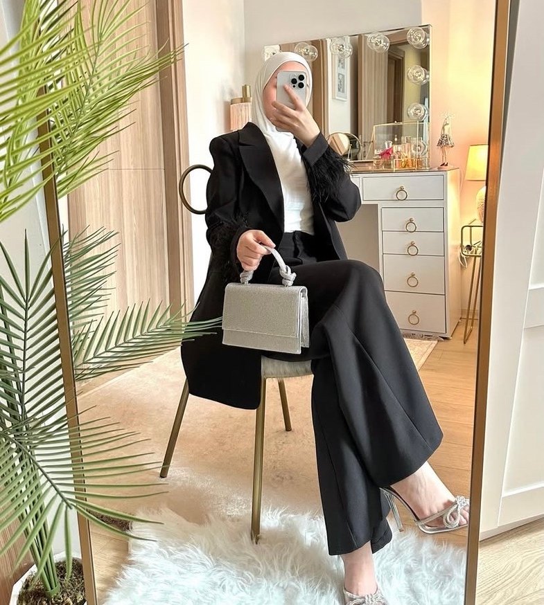 Uzun Siyah Kemerli Kadın Takım Elbise