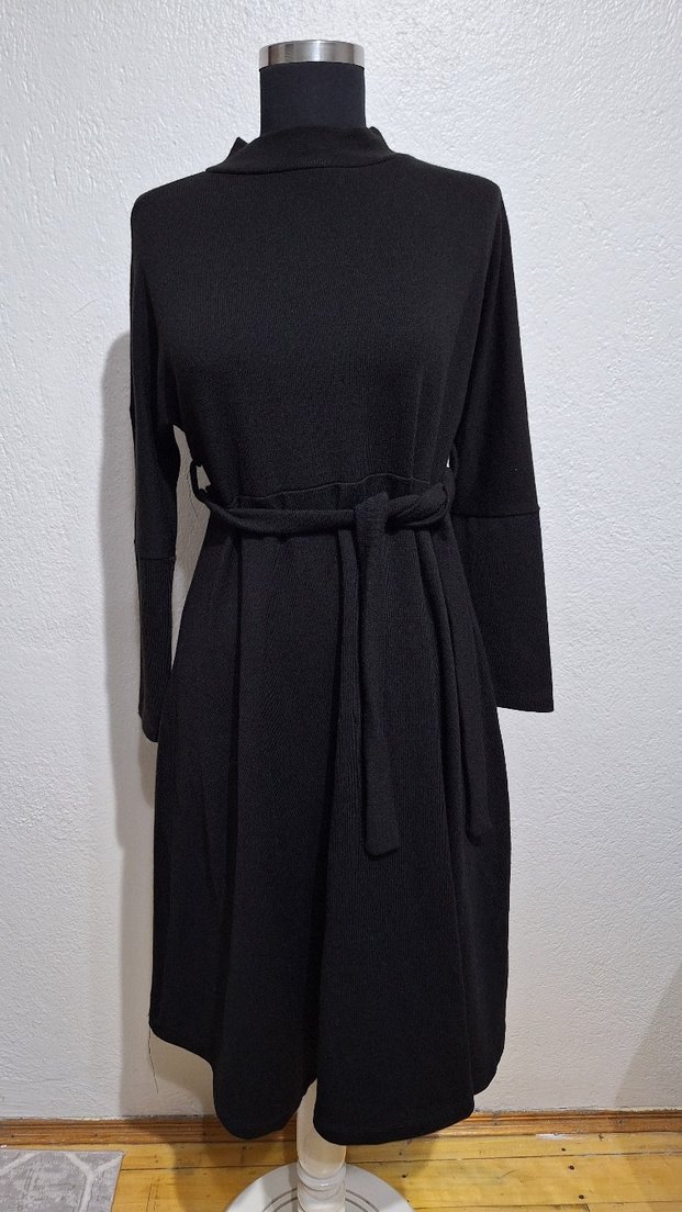 Yüksek yakalı, kemerli uzun siyah elbise, rahat kesim ve yumuşak sıcak kumaştan üretilmiştir. Minimalist ve gotik tarzlar için uygundur. Ürün 5xl beden bir üründür fakat kalıbı dardır. XL 2XL 3XL Bedenlere uygundur.