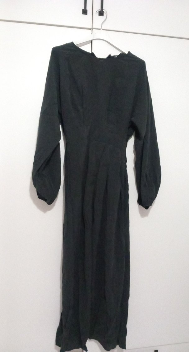 Uzun siyah keten elbise, bol kesim, drapeli uzun kollu Minimalist ve gotik tarzı yansıtır, günlük kullanım için uygundur.