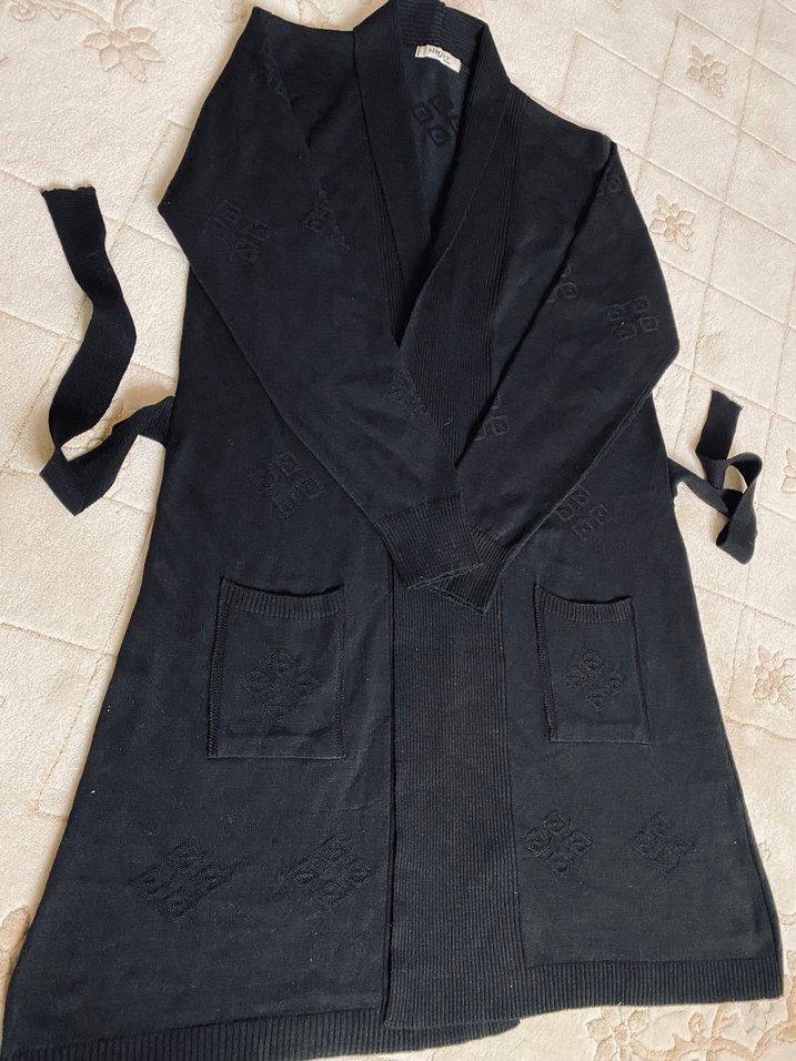 Uzun siyah kadın nakışlı desenlere ve normal kesime sahiptir. Rahat, bohem tarzda, uzun kollu ve ön ceplidir. Beli bağlamalı Ceket günlük kullanıma uygundur.