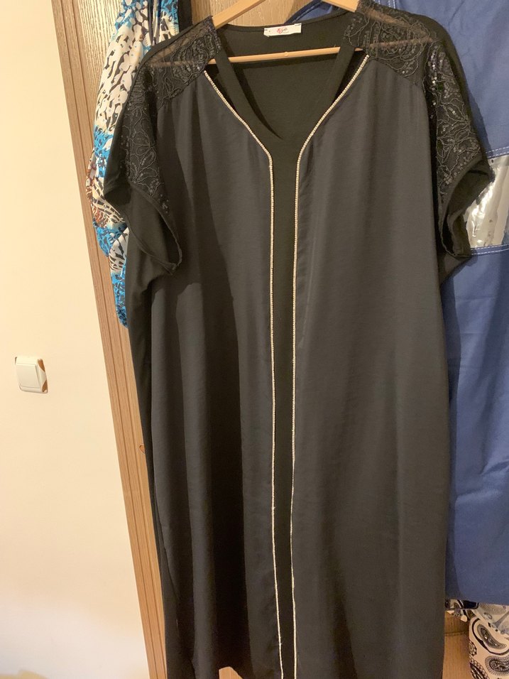 Uzun, bol kesim ve kısa kollu siyah kadın elbisesi, nakış detaylarıyla bohem Paris tarzını yansıtıyor.