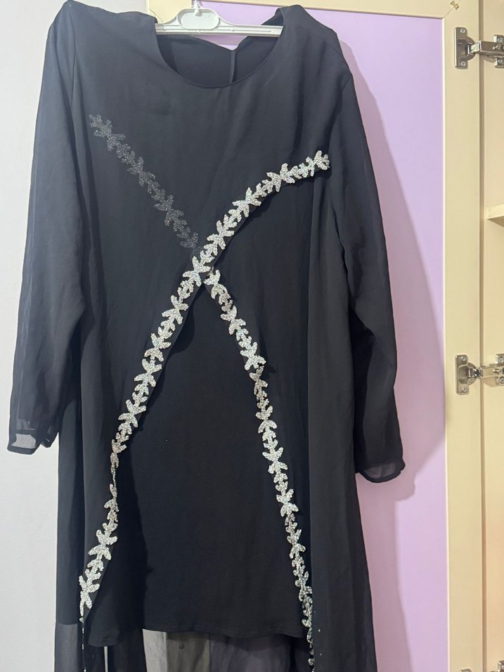 Uzun Siyah Nakışlı Gotik Kadın Elbise