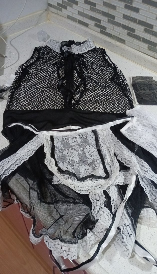 Uzun boy, siyah nakışlı kumaş ve dantel detaylarıyla tasarlanmış, vücuda oturan hemşire kostüm gecelik