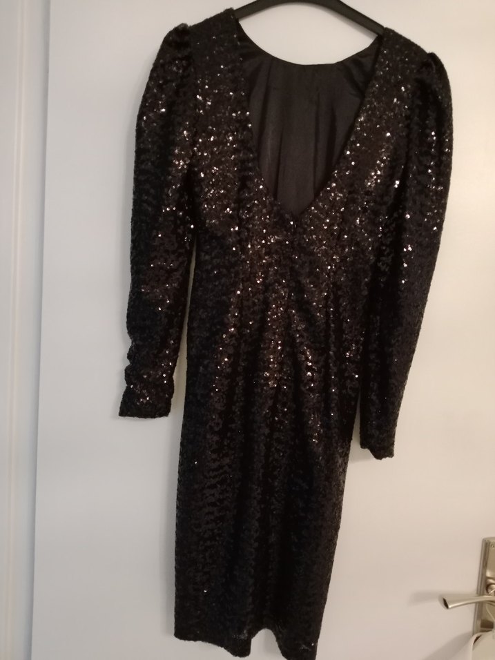 Uzun Siyah Payetli sırt dekolteli payetli elbise