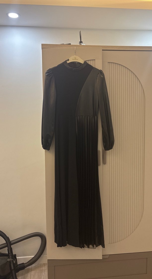 Uzun Siyah Pileli Gotik Elbise