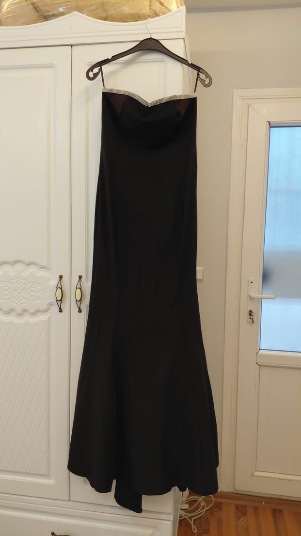 Uzun Siyah Straplez Kadın Abiye Elbise