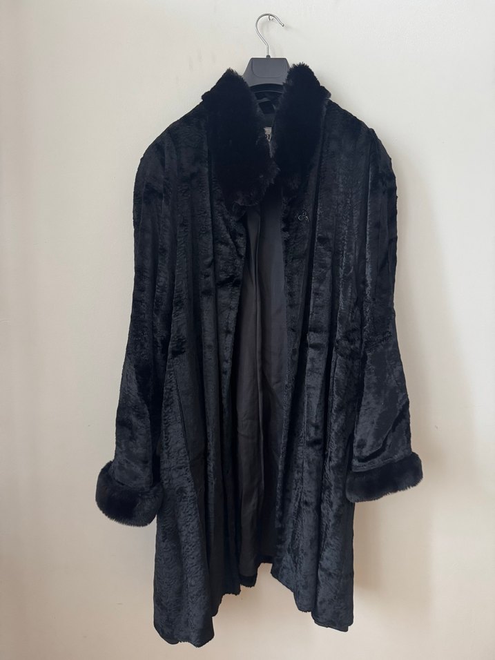 Uzun Siyah Süet Kürk Detaylı Kadın Kaban
