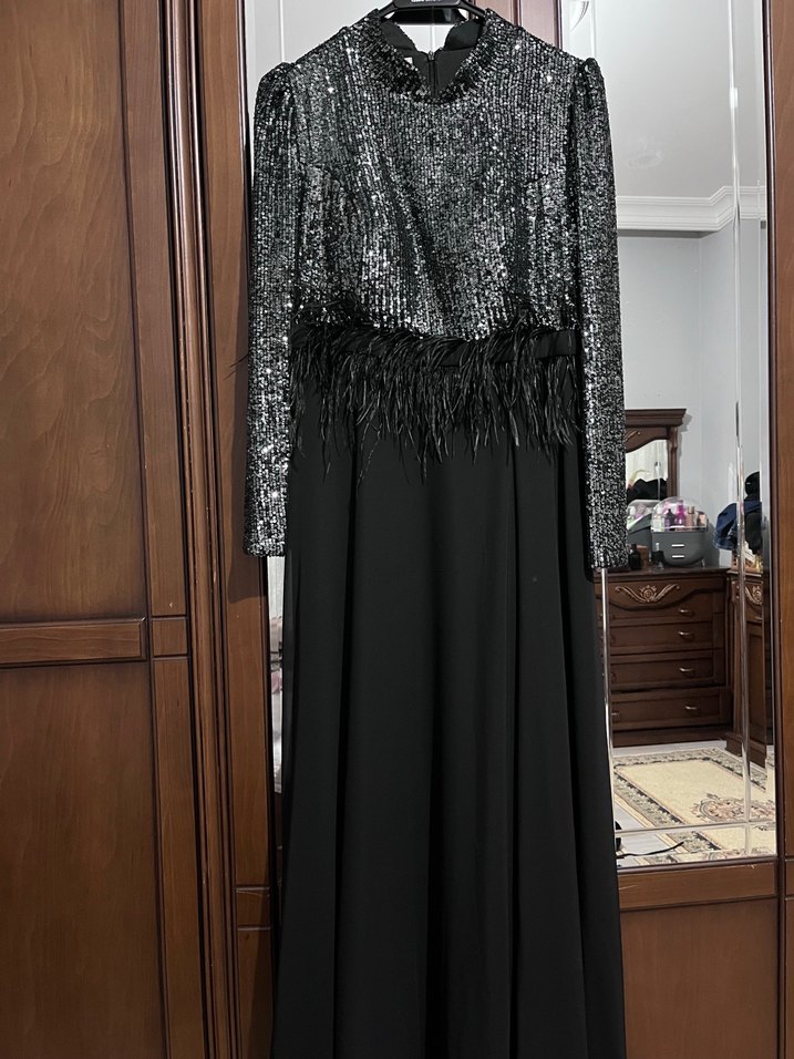 ASIL FİYATI 1500l Uzun Siyah tüllü Kadın Abiye Elbise