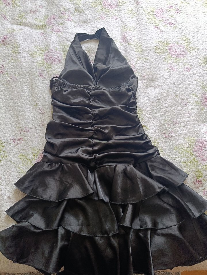 Bu siyah, v yaka ve askılı, uzun elbise, kat kat fırfır detaylarıyla gotik ve avangart bir tarz sunar, parti için uygundur.Beden XL yazsa da kalıbı dar gibi.38-40 beden de giyebilir. Biraz esneme payı da var.