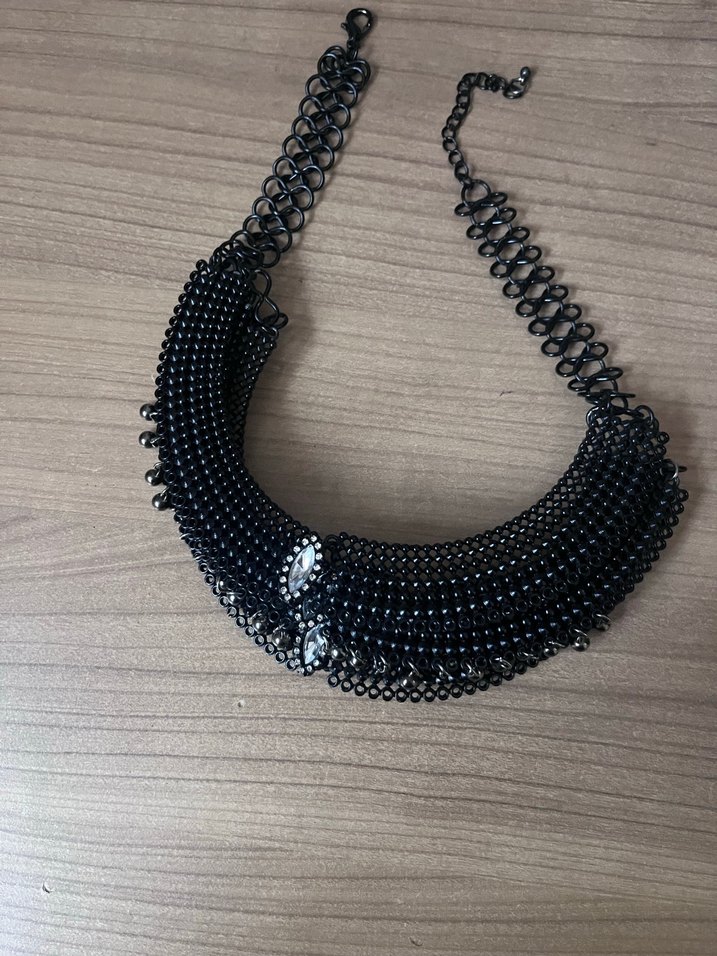 Uzun siyah yılan desenli ve boncuk detaylı gotik tarzda kolye, trend ve avangart tarzlar için uygun. Günlük kullanıma uygundur.