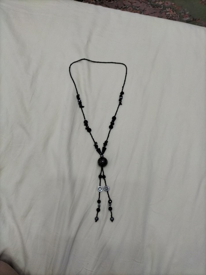 Uzun siyah yılan desenli ve boncuk detaylı kolye, gotik ve bohem tarzları yansıtarak günlük kullanıma uygundur. az kullandım