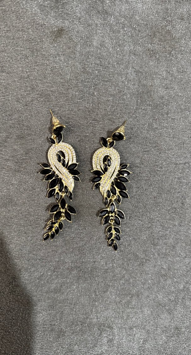 Uzun siyah yılan desenli ve payet detaylı küpeler, gotik tarzı klasik zarafetle buluşturuyor, düğün için uygun.