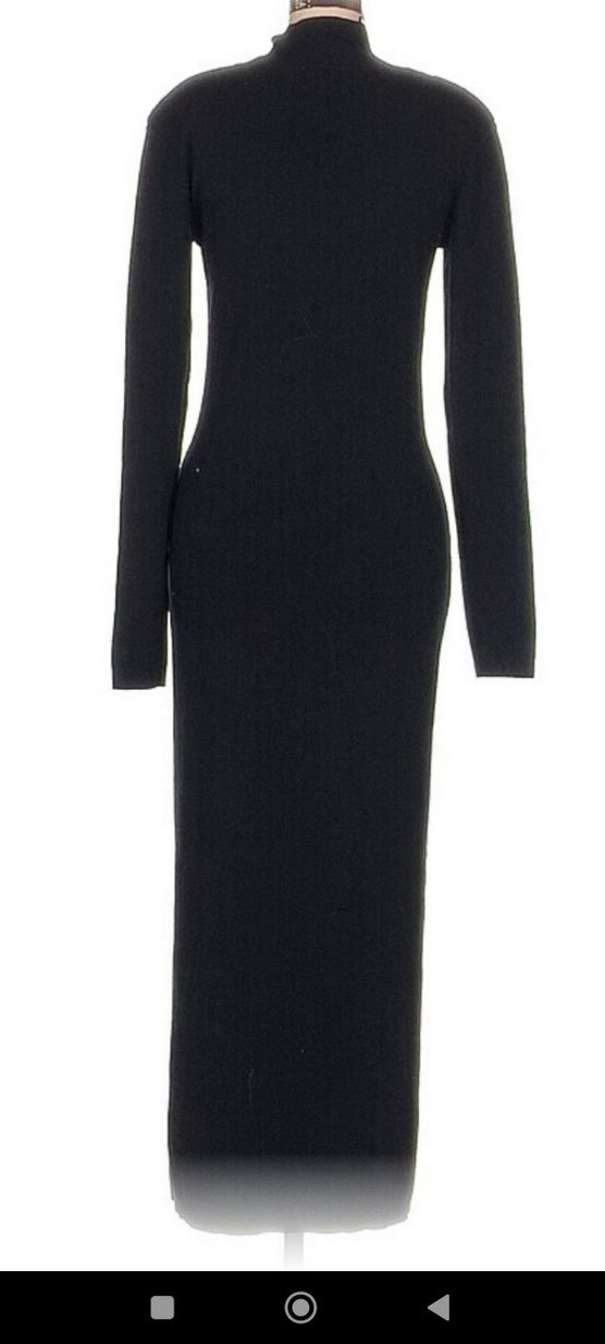 Yüksek yakalı ve uzun kollu, siyah ve dar kesim uzun elbise. Yumuşak ve sıcak kumaştan, minimalist ve gotik tarzda, ofis için uygun.